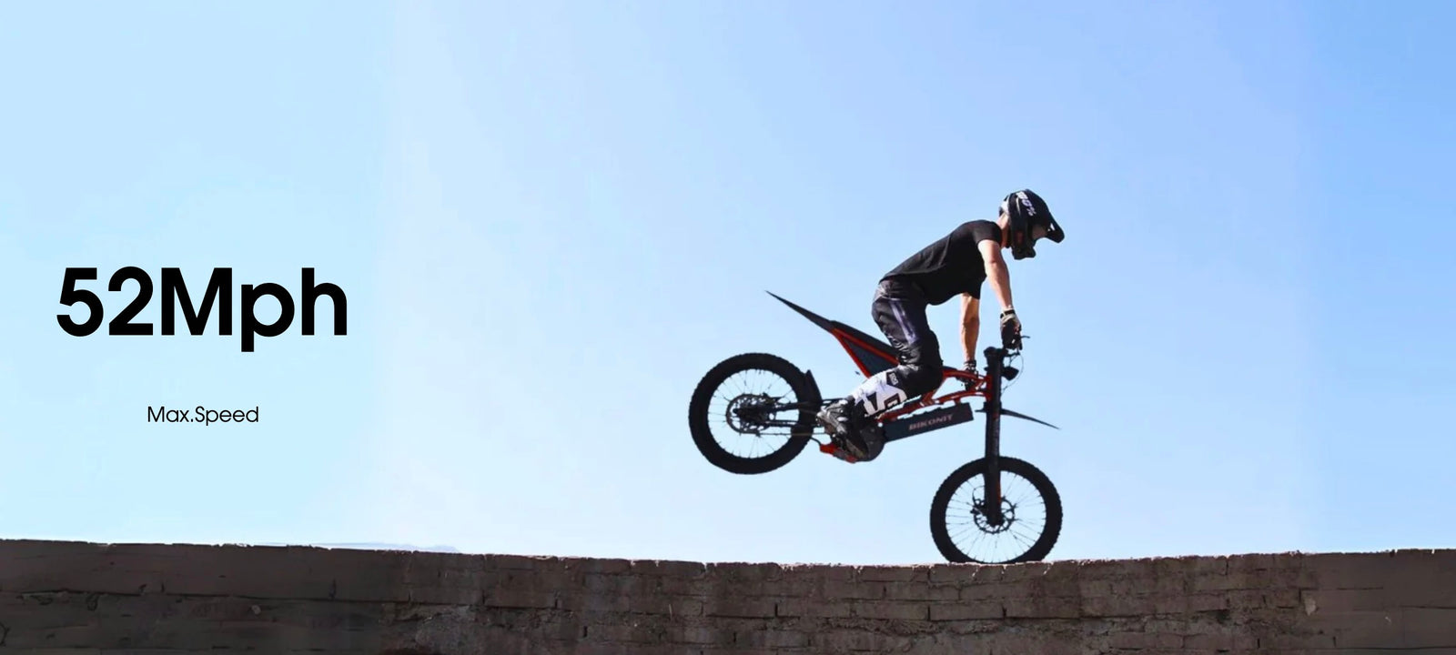 - Blazing Top Speed (52 MPH / 85 km/h): Reach thrilling speeds of up to 52 MPH, making the Bikonit BK-28 one of the fastest and most exciting electric dirt bikes available.