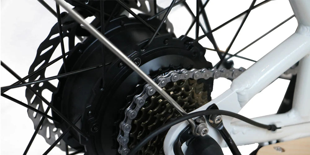 - Modular Battery System: Choose from a standard 48V 14Ah Samsung battery (up to 40-50 miles range) or upgrade to a 20Ah main battery. For ultimate endurance, add a secondary 48V 14Ah or 17Ah battery to achieve an impressive dual battery range of 80+ miles (up to 150 miles with optimal configuration). This long-range electric cargo bike is built for extended adventures.