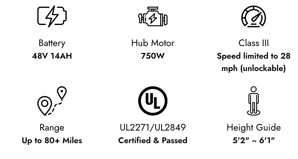 - Battery: 48V 14Ah Samsung(Optional 15Ah/17Ah Second Battery)