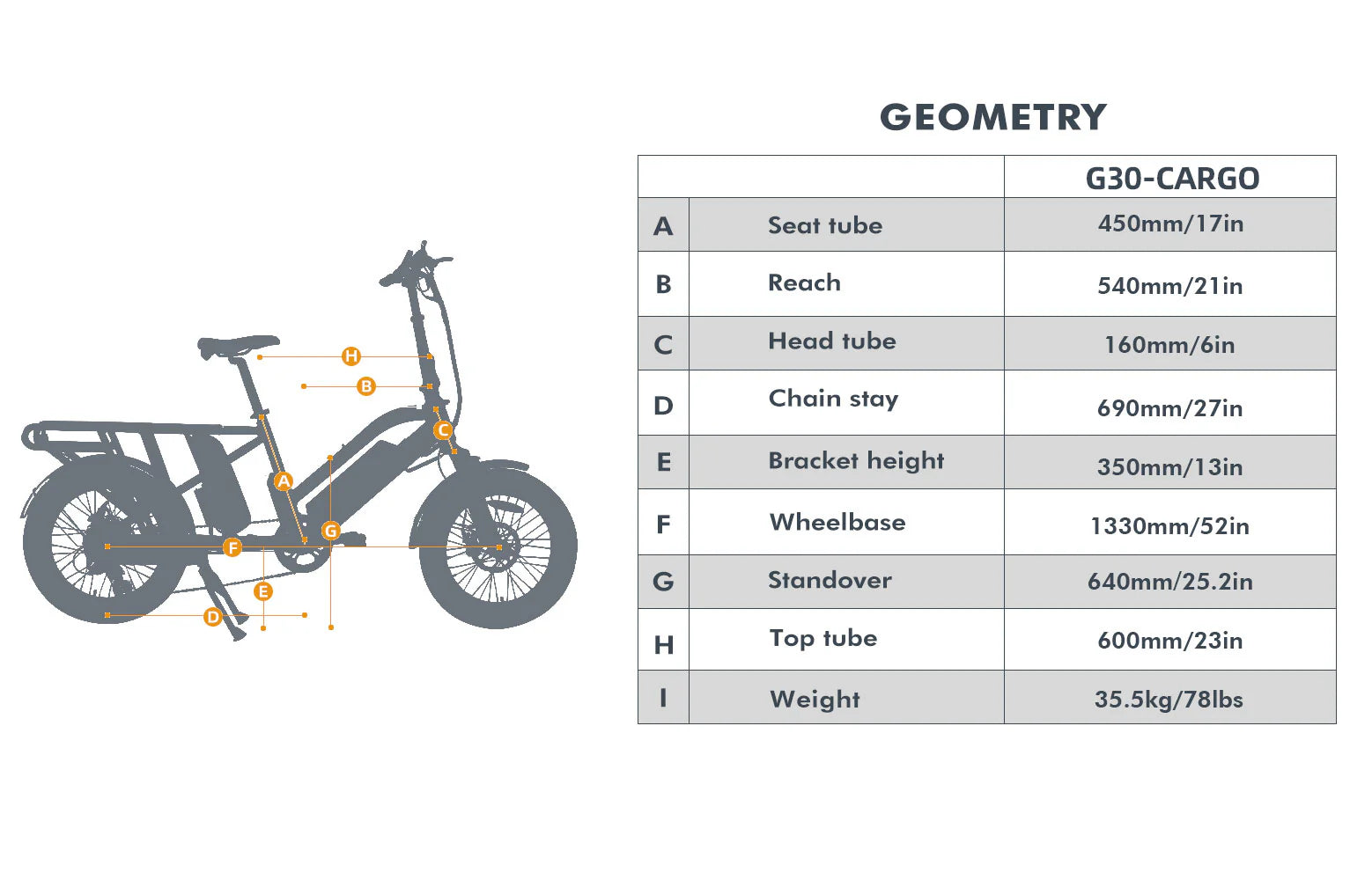 - Optional Second Battery (14Ah or 17Ah): Significantly extend your range up to 65 miles or even 85+ miles (depending on battery configuration and riding conditions) with the dual battery system. This makes the G30-CARGO an exceptional long-range cargo electric bike.