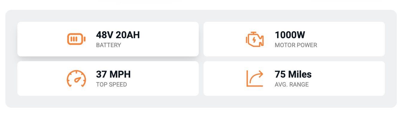 - Range:Avg. 75 Miles* on PAS, up to 85 Miles on Level 1, 60 Miles* on Throttle (Range Per Charge is measured under the conditions that power is sufficient, with a 75kg load, at 86°F (30°C), 70% humidity, on a level road, in pedal assist mode with level 1 assistance, and in pure electric riding mode by throttle. Actual results may vary based on differences in temperature, load, wind speed, road conditions and other factors.)