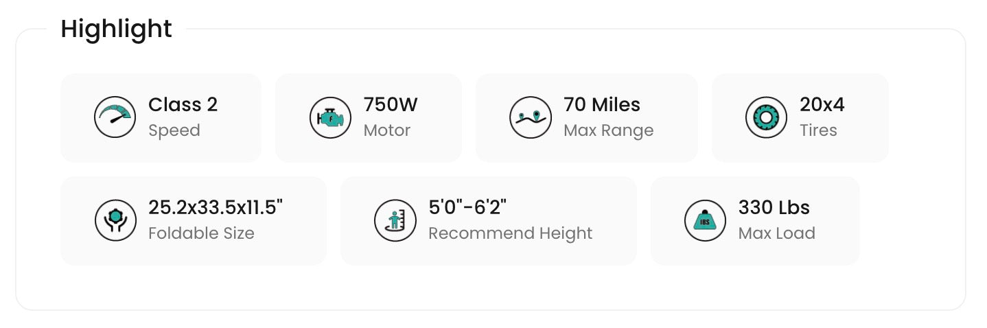 Powered by a 48V 14Ah (672Wh) LG lithium-ion battery, the SX20 offers up to 70 miles on pedal assist and 40 miles on throttle mode.