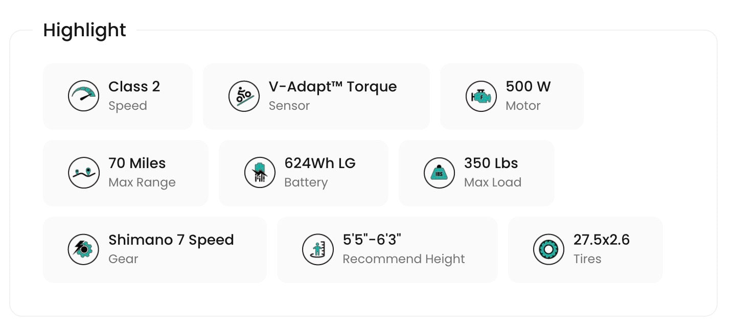 V-Adapt™ Torque Sensor: The Zeal LT7 features VTUVIA's advanced V-Adapt™ system, which seamlessly blends torque and cadence sensing. This means smooth, instant power delivery calibrated to your pedaling effort – no jerks, no lag, just perfectly balanced assistance. It feels like riding a regular bike, only easier!