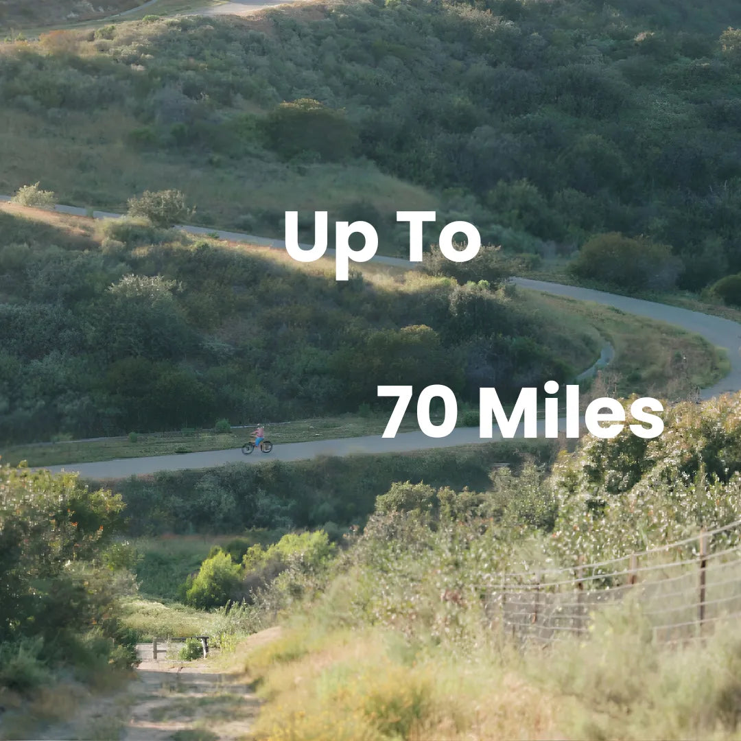 Max 70 Miles(Pedal Assist) 40 Miles(Throttle Only) |