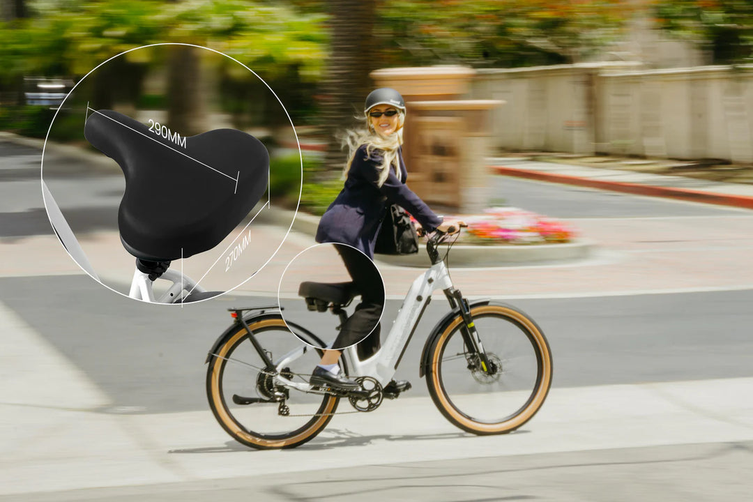 Low Step-Through Frame: The signature step-through frame makes mounting and dismounting incredibly easy, especially for riders with limited mobility, seniors, or those wearing professional attire. This accessible electric bike promotes confidence and convenience.