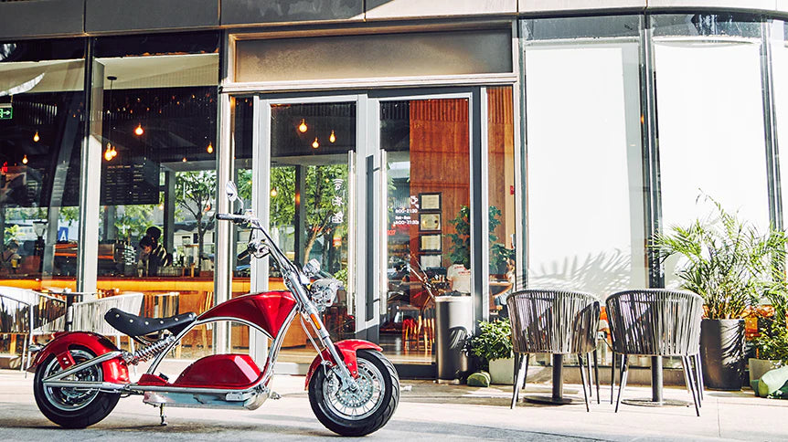 Prepare to turn heads and dominate the road with the Eahora M1PS, a revolutionary electric chopper motorcycle that seamlessly blends classic Harley-style aesthetics with cutting-edge electric performance. This isn't just an electric fat tire bike; it's a statement. With its raw power, exceptional range, and luxurious ride, the M1PS offers an adrenaline-packed experience for both urban cruising and rugged adventures. Get ready for an electric moped scooter that feels like a true motorcycle.