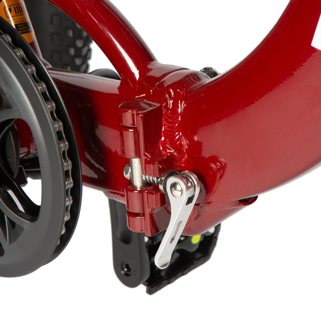 - Foldable Aluminum Alloy Frame: The 6061 Aluminum Alloy foldable frame allows for easy storage and transport, making it an ideal compact electric trike for apartments, RVs, or car trunks. The quick-release clamp on the stem further simplifies folding.
