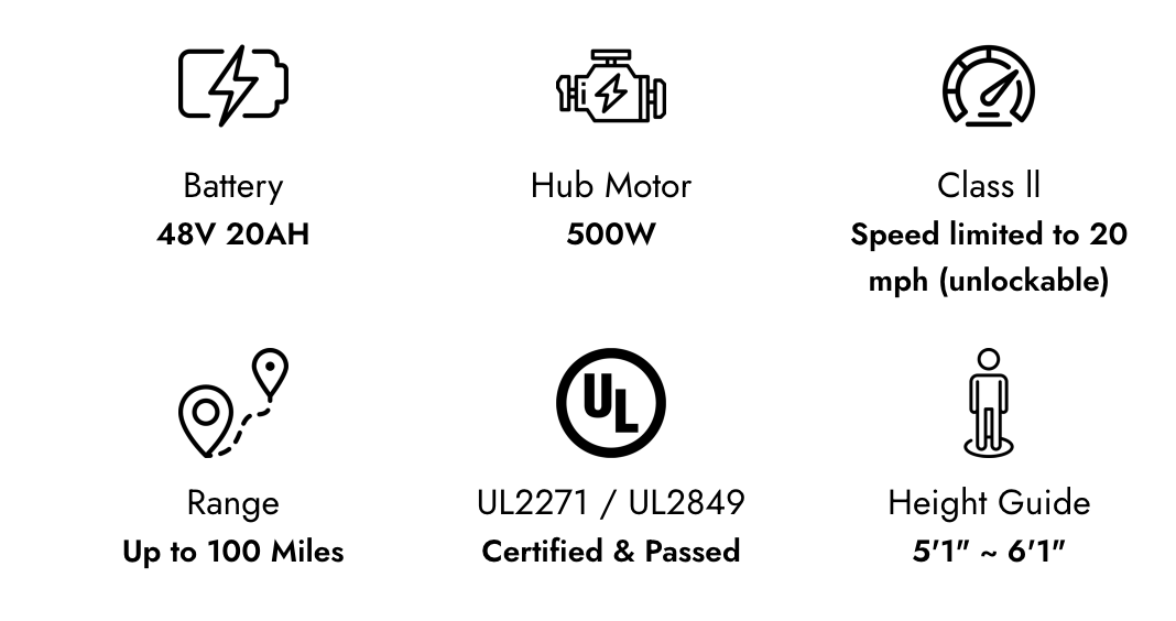 - Consistent Speed: Maintain a comfortable and safe speed of 20 MPH (32 KMH), making it suitable for various urban and suburban environments.