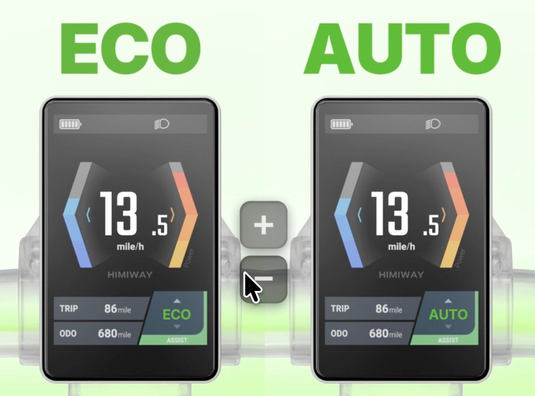 In Auto mode, the bike adds more support on hills and eases off on flat roads — all without you having to think about it.