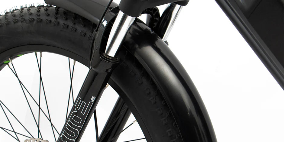 - RST Guide Front Suspension Fork: Absorb bumps and vibrations with the RST Guide front suspension fork (100mm travel), enhancing comfort and control on uneven trails.