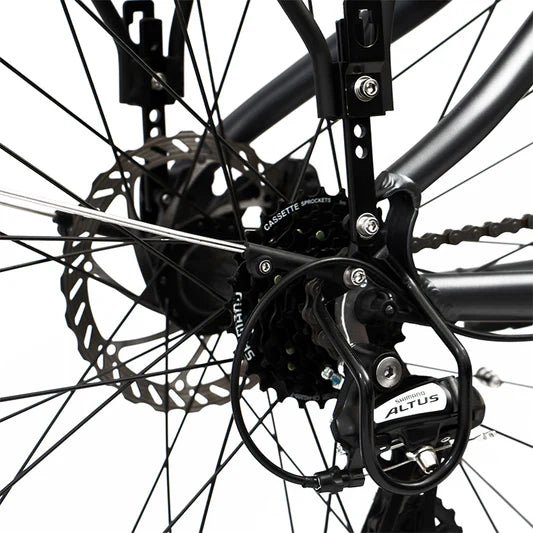 - Shimano 7-Speed Drivetrain: A reliable Shimano 7-speed gear shift system (Shimano Altus or similar) allows you to effortlessly adapt to varying inclines and speeds, optimizing your pedaling efficiency with the mid-drive motor.