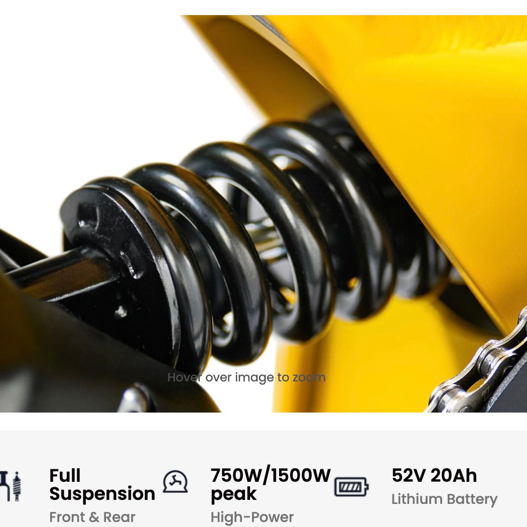 As the first ebike suv in the US, the Deer is the first choice for recreational riders who love to use ebikes for all kinds of purposes, such as commuting or off-road riding. The full suspension system will give you the highest level of shock absorption and the smoothest bike rides. With both hydraulic disc brakes and a 52V 20Ah battery, the Deer provides the most comfortable experience.