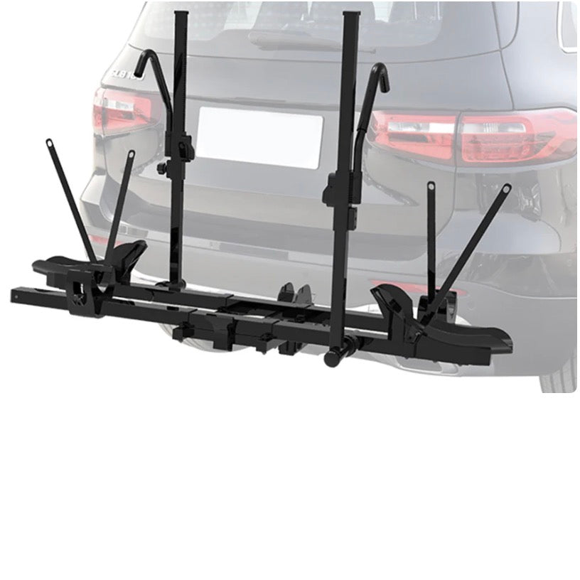 This bike rack platform is designed to comfortably hold and safely transport two ebikes. The hooks and tire cradles are adjustable to accommodate a wide range of bike frames or wheel sizes ranging from 20" to 26". Up to 145 pounds of load capacity can fully meet your needs.