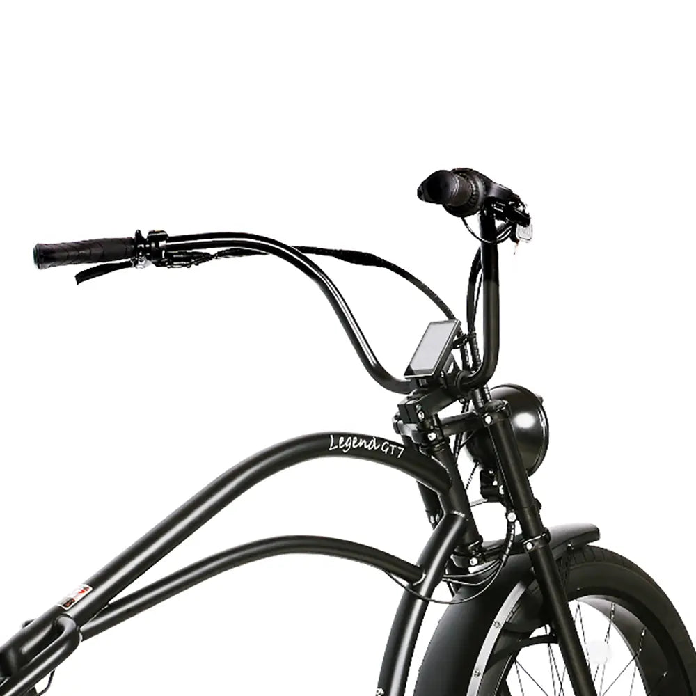 Unleash your inner rebel and command the streets with the Tracer Legend GT7, a truly unique 1000W stretch cruiser chopper eBike. Blending iconic custom motorcycle aesthetics with cutting-edge electric performance, the Legend GT7 isn't just an electric fat tire bike; it's a statement. Designed for riders who crave style, power, and an exceptionally comfortable ride, this chopper eBike guarantees you'll turn heads wherever you go.