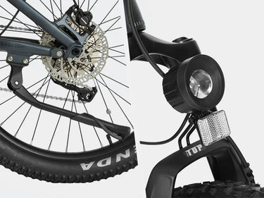 • Brakes:Tektro Hydraulic Disc Brakes w/180mm discs, w/ power-cut-off function