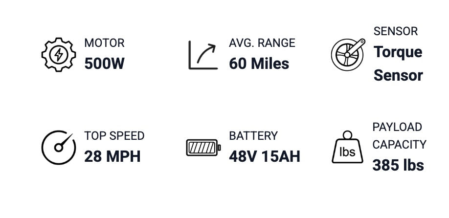 • Charger:48V 3 Amp Charger, Approx. 5 Hour Charging