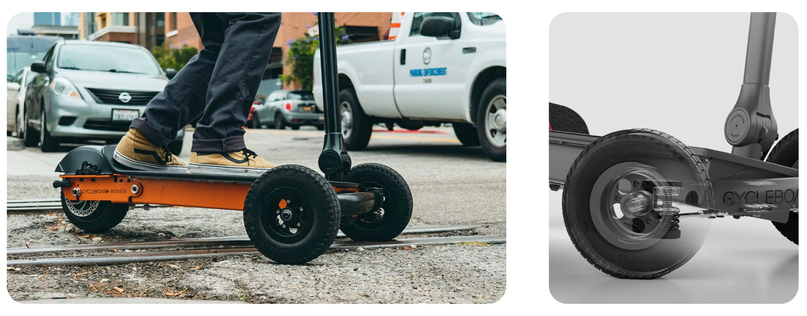 Exclusive CycleBoard 10" x 3" mixed-terrain tires