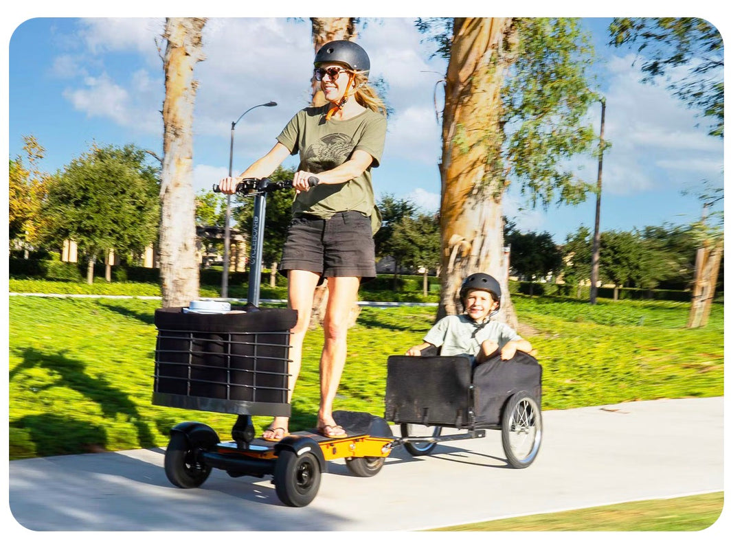 Max out your CycleBoard, with an impressive payload capacity, the Rover can handle multiple riders, bulky items, trailer attachments, baskets & more. With our exclusive lineup of accessories, you can personalize your ride for any adventure, from grocery runs to camping trips, to beach days — and everything in between.