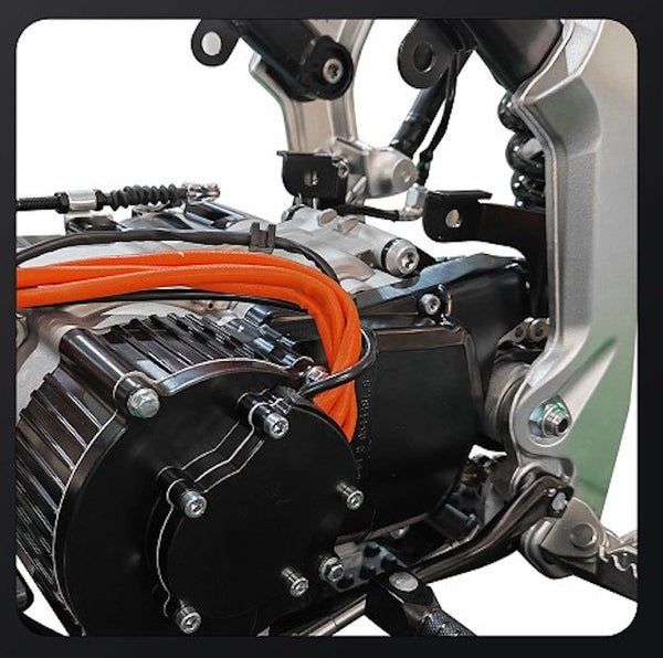The Moto Tec Venom 72v 1200w Electric Dirt Bike uses the MNT forks, a set of 43mml upside-down fork legs with 250 mm of travel. With outstanding response and damping characteristics, the MNT fork has a sensitive feel and resistance against bottoming out.