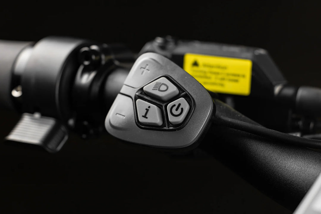 Brakes: 180mm Logan hydraulic disc brakes with dual-piston pads and integrated electric safety cutoff for reliable and powerful stopping in all conditions.